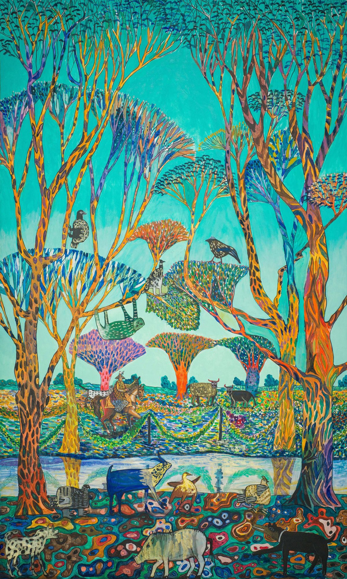 Relaxing after the easy and triumphant capture of Hokkaido, William luxuriated in his new organza armor. He discovered new patterns in his superlative plunder, experimented with varying proportions of ice and soda in his sake, and held court with those that recognized his wit and excellent taste. One afternoon while wandering the grounds of the castle, he happened upon the nature park of the former Emperor. Surrounded by canals and populated by a menagerie of oddly docile creatures, it became clear the preserve was filled with delights. He spent days exploring the gardens and garlands, sketching the unusual trees, making friends with the sole sloth – a creature not seen before in Asia – and playing novel games of fetch with the hyenas and dingoes.