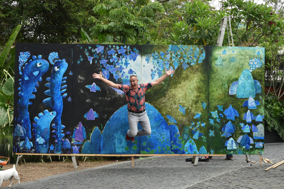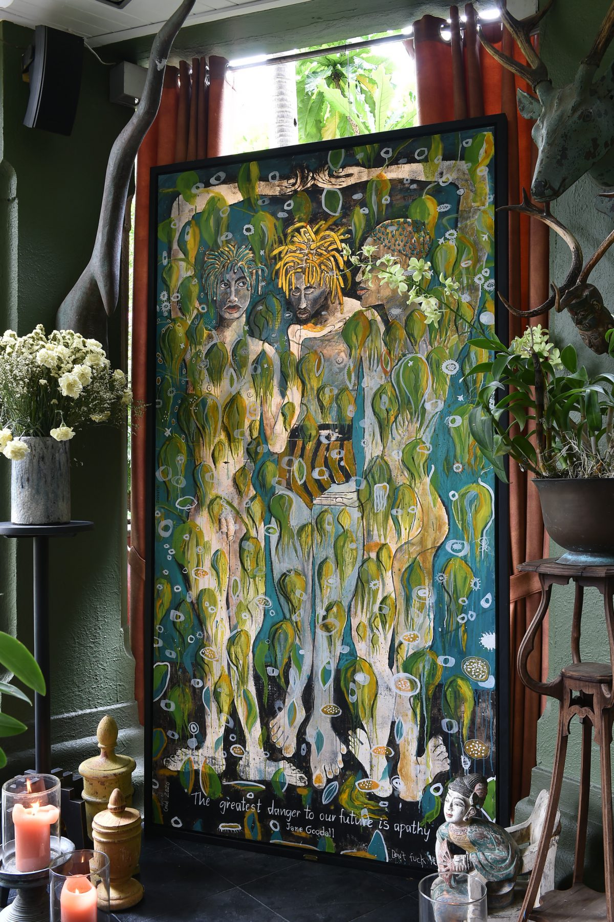 Most weekends you will find me painting at our jungle home “Baan Botanica” (@j_baan_botanica) and hosting dinner parties with our friends; often it is both at once! Recently we opened the first BENSLEY Outsider Gallery here in Bangkok, which is home to some 80+ artwork. There is a sister gallery at the InterContinental Danang, and both are thrilled to welcome visitors! There you will find work that is humorous, unapologetically colorful, dizzyingly fun, surprising, full of heart – and ever changing. As a young artist my style is ever changing, so prepare to be surprised! And know that the key to it all is doing good – painting is balm to my soul, but it is also a way for me to help contribute to protecting our world.
