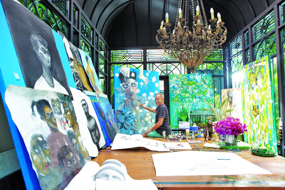 I like to think of myself as a jack of all trades. Best known as an Architect, Interior Designer and Landscape Designer, I have spent the last 35 years building 200+ hotels and palaces in 30+ countries. However, in my free time, I am also a gardener, fisherman, lover of all things natural, and most recently, an OUTSIDER artist… I say Outsider as I was not traditionally trained in fine art, so I might have a different perspective on the matter. Just before COVID kicked off I picked up painting, and it very quickly became a passion – soon I was practicing wherever I went – airplanes, site visits, on the back of menus, and drawing portraits on-the-go… When borders closed it really hit full throttle as I suddenly went from traveling 40 weeks a year to none!