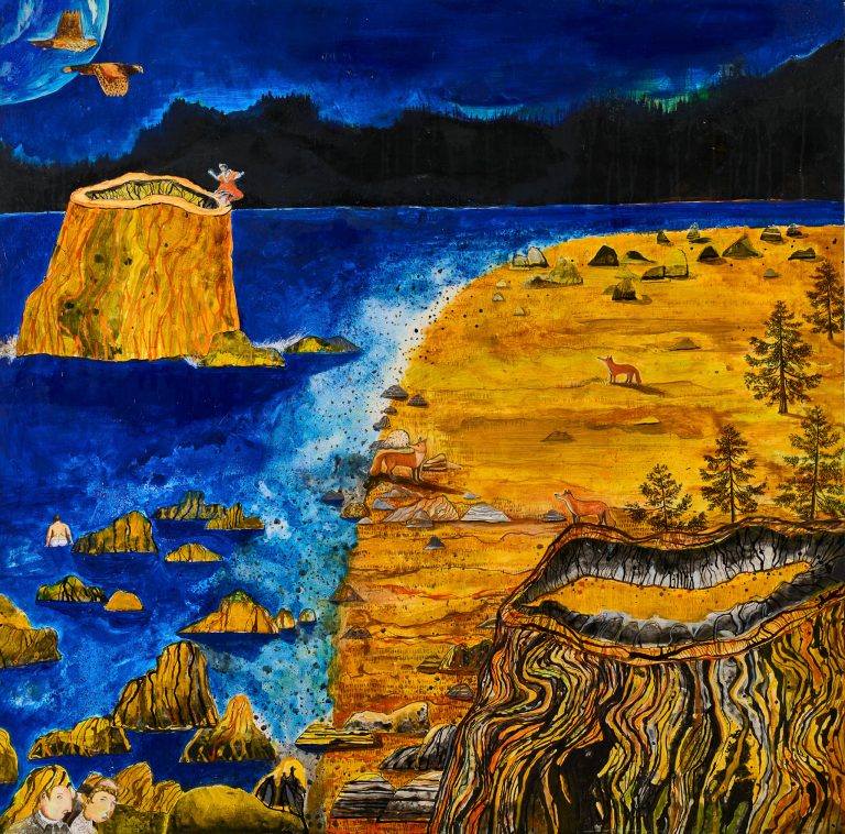 Bensley has visited the Faroe Islands, befriended the members of the FKC, and has globetrotted with them on numerous occasions. This outsider art show is a celebration, and a serious documentation, of Bensley’s love for these jubilant, – sometimes wigged out people. He has spent a solid year painting for this show, starting with a series of watercolor field paintings. These have provided the base for each of these paintings.