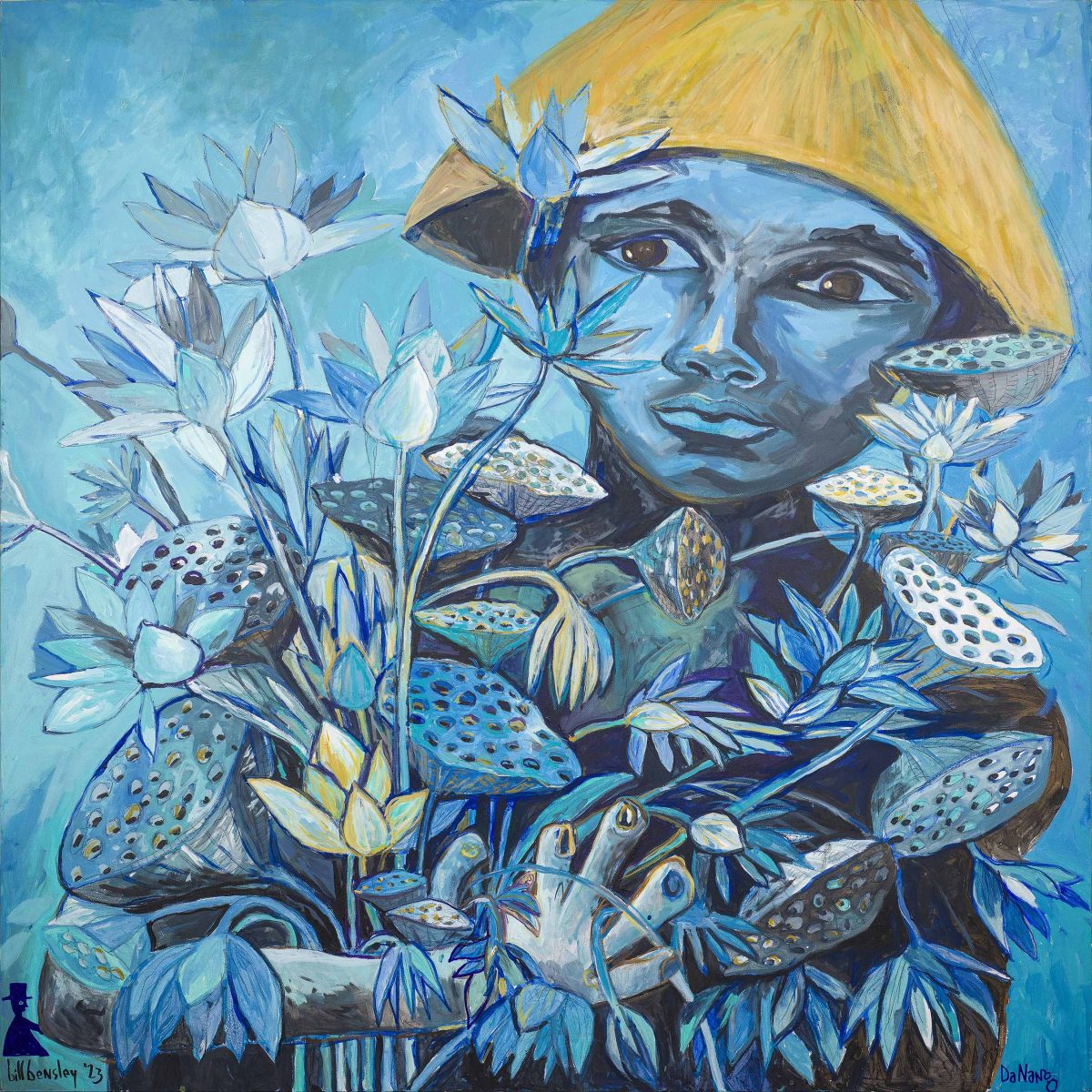 LOTUS GARDENER IN DANANG Bill Bensley , 2023 Acrylic on canvas 120 × 120 cm , 47.2 × 47.2 inch $6,666.00 Sold!