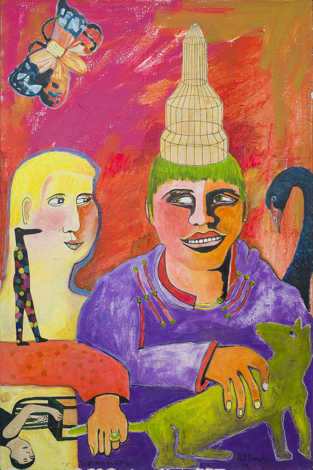 Poojah Loves His Friends Bill Bensley , 2023 Acrylic on canvas 90 × 120 cm , 35.4 × 47.2 inch $5,000.00 Enquire about this artwork Name Email