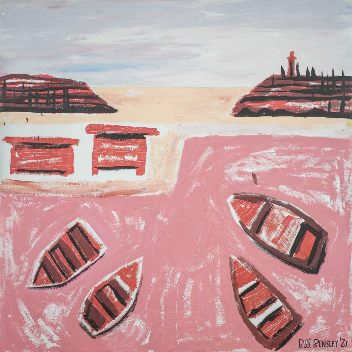 Red row boats on the pink Beach Bill Bensley , 2023 Acrylic on canvas 120 × 120 cm , 47.2 × 47.2 inch $6,000.00 Currently part of an exhibition Enquire about this artwork Name Email