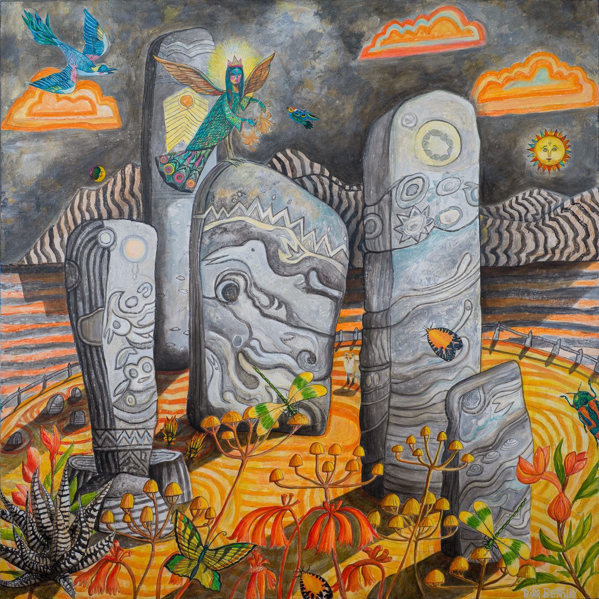 TIGAN AND THE DEER STONES Bill Bensley , 2023 Acrylic on canvas 120 × 120 cm , 47.2 × 47.2 inch The Bluebird knew who she was and flew to tell her sister who was furious. Alas she was also in love with the prince. $6,000.00 Currently part of an exhibition Enquire about this artwork Name Email