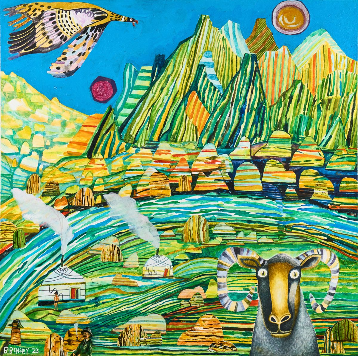 What drove the sheep mad? Bill Bensley , 2023 Acrylic on canvas 120 × 120 cm , 47.2 × 47.2 inch Sold!