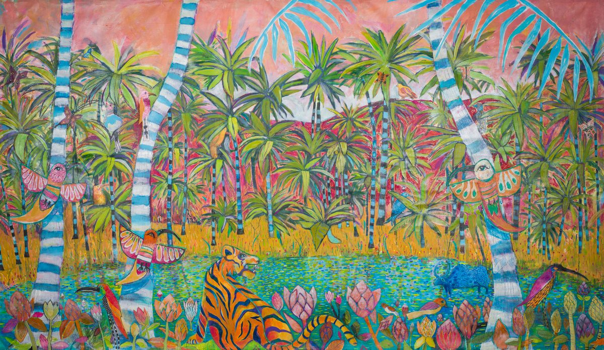 WHAT’S FOR LUNCH?” THE ONE-EYED BEE-EATERS SAID TO SANGJAY Bill Bensley , 2024 Acrylic on canvas 165 × 284 cm , 65.0 × 111.8 inch $15,000.00 Enquire about this artwork Name Email