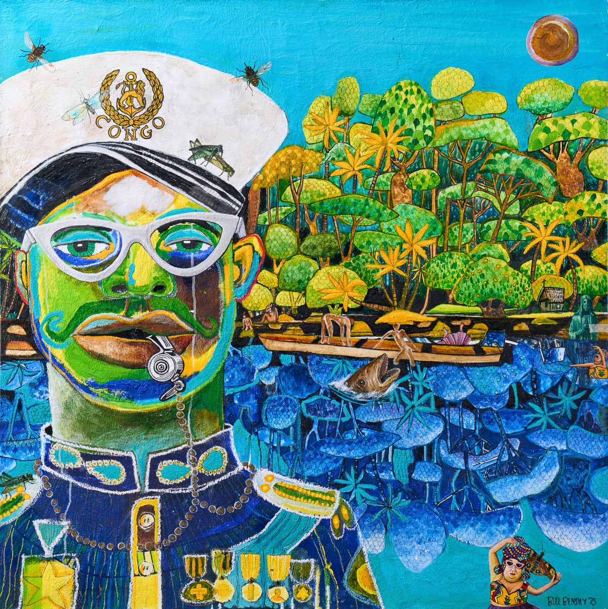 Why swim in Tigerfish infested waters? Bill Bensley , 2023 Acrylic on canvas 120 × 120 cm , 47.2 × 47.2 inch Sold!