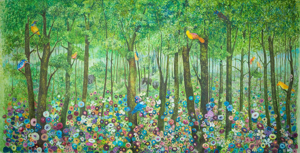 WILDLIFE LOVES WILDFLOWERS Bill Bensley , 2024 Acrylic on canvas 120 × 250 cm , 47.2 × 98.4 inch $10,000.00 Sold!