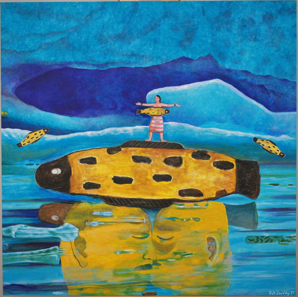 The Tigress Princess was pushed to the surface by the giant fish, balancing on the heads of the two yellowhead twins. As she was lifted into the air, the prince meanwhile was enraptured by his own reflection.