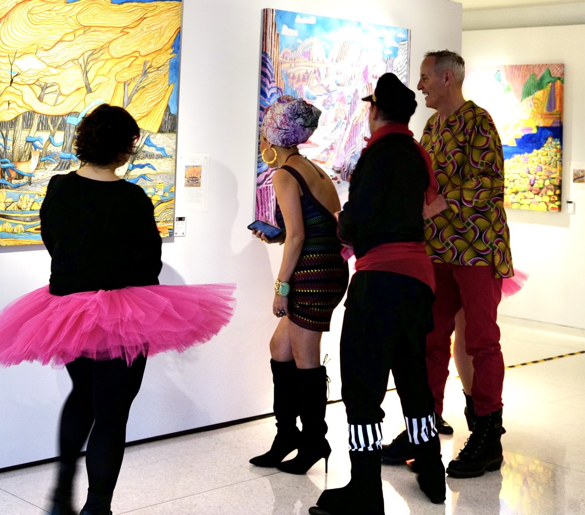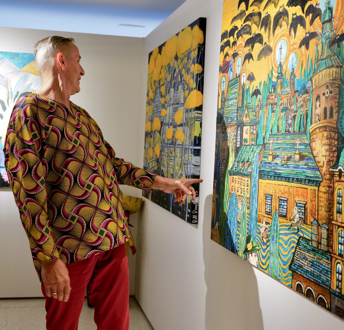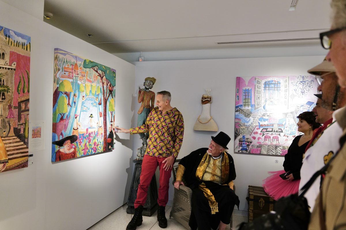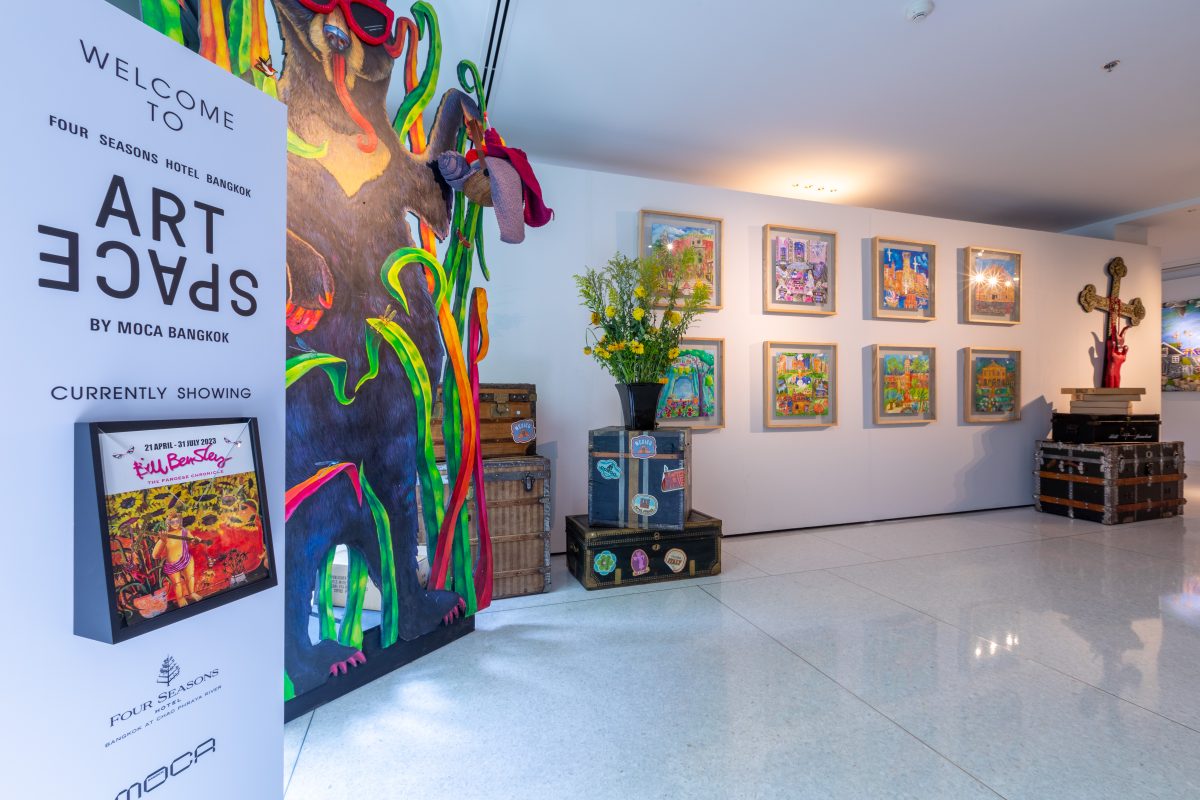 Bill Bensley – the artist – returns with a new show at the Four Seasons ART Space by MOCA Bangkok. Fans who enjoyed his LOVE CAMP EXPLORE DREAMS show at River City last year will recognize his trademark humor and bold colors. His new exhibition will be a departure from his previous show – both stylistically and literally, as Bill invites visitors to come travel the world with him and the ‘Faroese Knitting Club’ (FKC) – a convivial gang of wigged out folks that enchanted Bill for decades. The show is entitled The Faroese Chronicle and is an exuberant and witty collection of 38 pieces, that depict Bill’s worldwide adventures with the FKC.