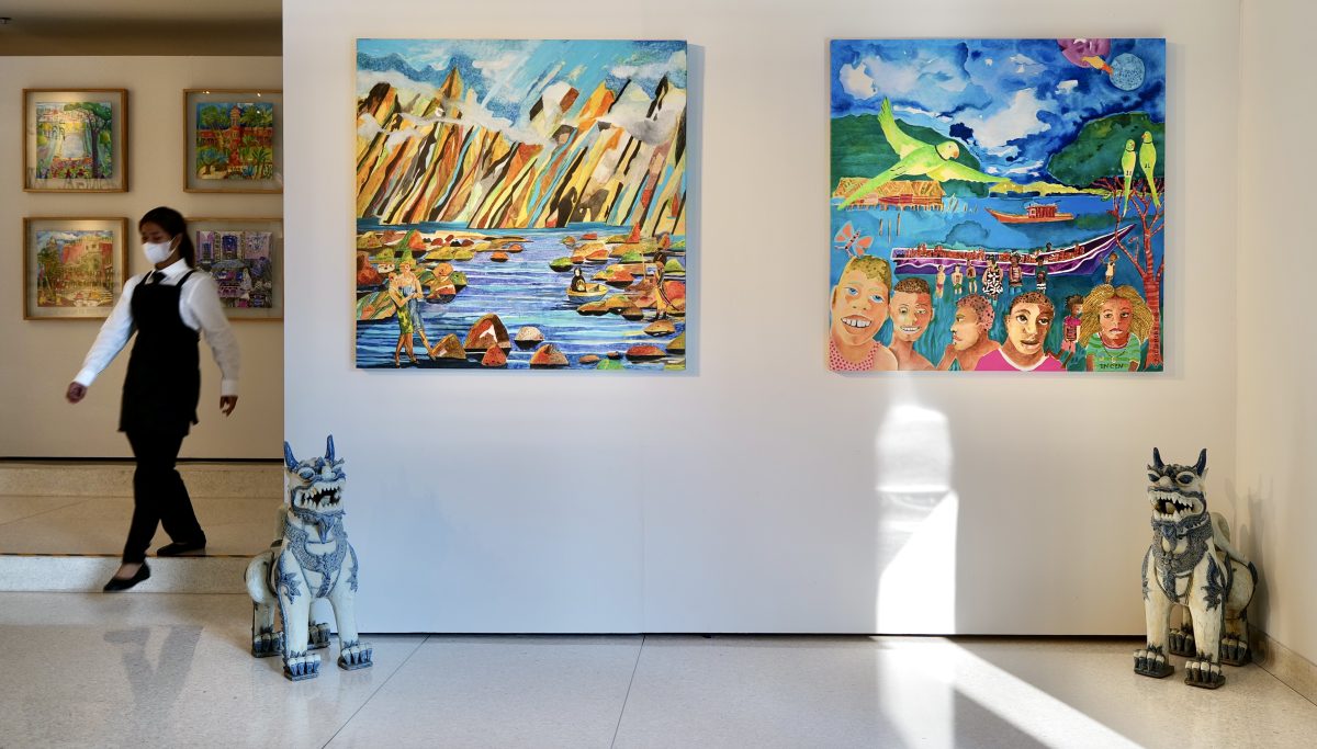 Each artwork will be associated with specific projects and people – and buyers will see exactly who and/or what their purchase supports, even receiving updates on the project’s progress. Nine paintings will fund full-board scholarships for 27 students at the Shinta Mani Hospitality school – with half of them coming from the remote Tmor Rung community in Southern Cambodia (near Shinta Mani Wild), where opportunity is limited. Continuing the Foundation’s work to provide safe water, some paintings will contribute to developing pipe systems for direct water supply to the local community in the South Cardamom Forest as well as Kohler Water Filters, and Water Wells for families and communities. Other paintings will fund a series of micro-loans, as well as support a variety of causes for families in abject poverty such as bicycles for 4 schools, making it easier for the children to attend school. Speaking of schools – the local community school in Tmor Rung will be repaired, while a new English school in the Siem Reap area will be created. For donors wanting to maintain contact with the Foundation, they can get updates on the project’s progress that they are supporting through their purchases of the artwork to support the specific venture.